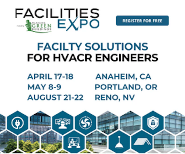 | | Sponsored | With a focus on HVACR, Hydronics, & Plumbing, the Facilities Expo ties together all aspects of facilities engineering, MRO, and green buildings. Register for FREE to explore our solution packed exhibitor floor, learn from industry experts, and network! |
