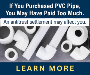 | | Sponsored | If you purchased PVC Pipe, you may have paid too much. An antitrust settlement may affect you. |